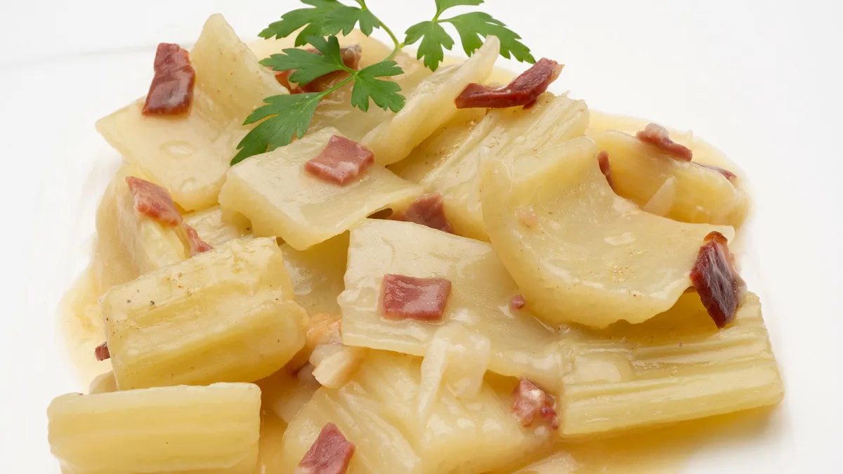 Alimento a destacar en el plato de hoy: el CARDO. Producto de temporada que mejora la digestión ya que mejora el funcionamiento del hígado, siendo un alimento recomendado para las personas con piedras en la vesícula biliar.