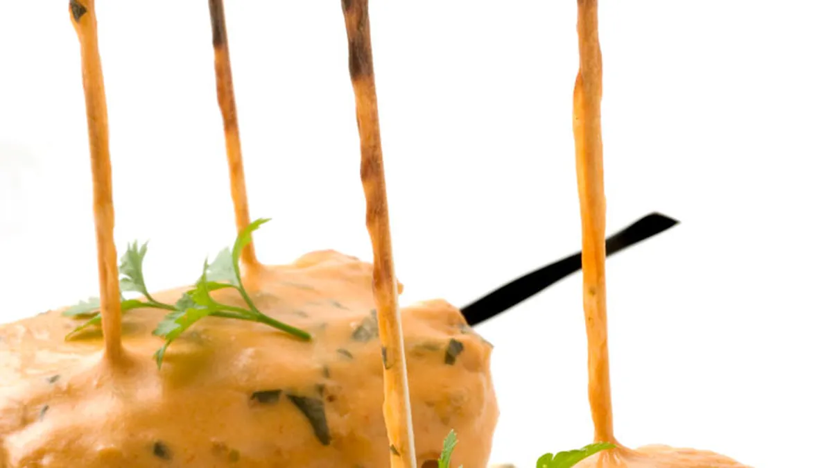 Sirve un "montadito" de cardo por persona y decora con una hojita de perejil.
