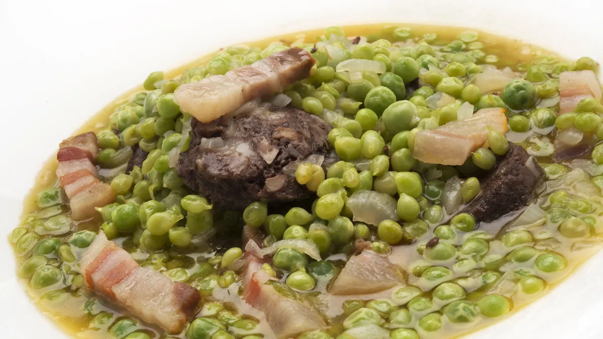 Cazuela de guisantes y butifarra negra