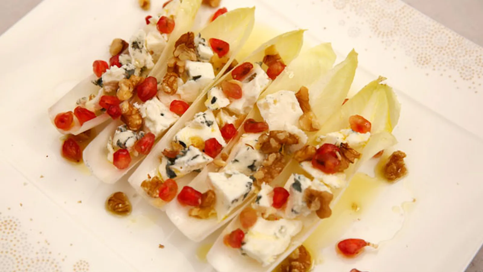 Endibias con queso, nueces y granada