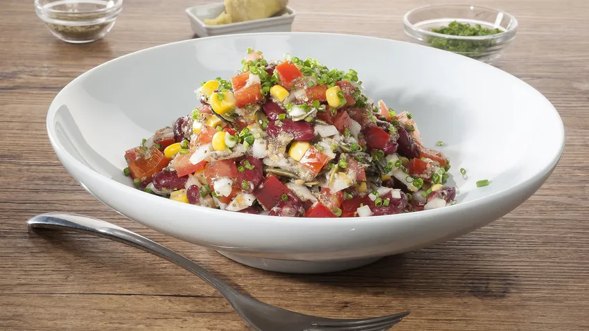 Elaboración de la receta de Ensalada de alubias rojas, maíz y semillas: