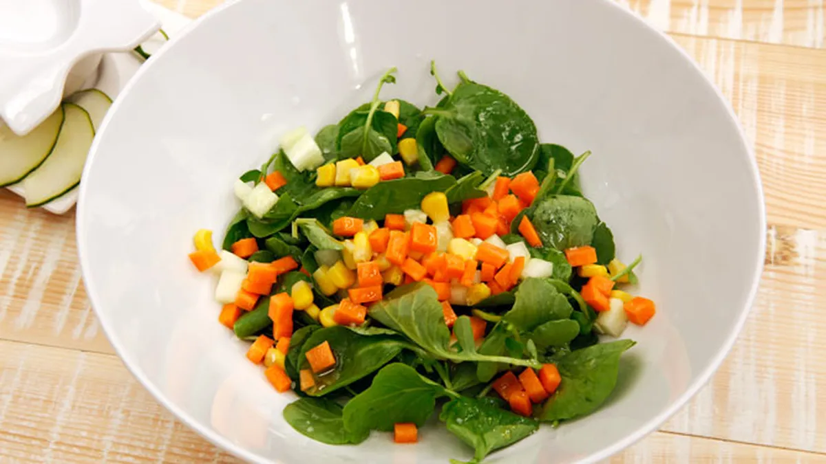 Receta de Karlos Arguiñano de ensalada de berros, pepino, zanahoria y maíz, un plato sencillo y rápido de preparar, apto para vegetarianos y veganos.