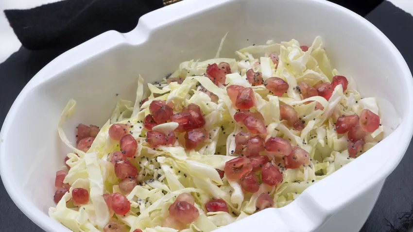 Karlos Arguiñano prepara una ensalada con berza picada, granada, semillas de amapola y aliño de limón.
