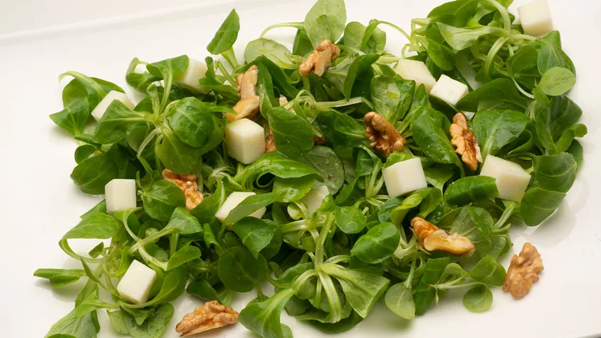 Ensalada de canónigos, queso de cabra y nueces