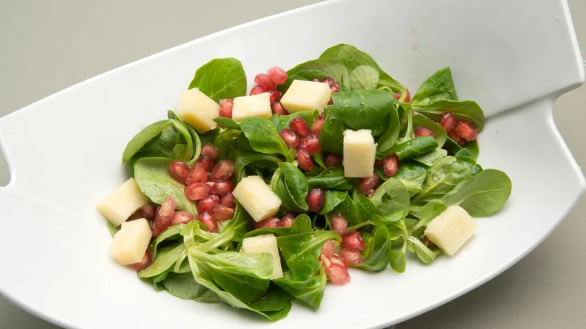 Ensalada de canónigos, queso y granada