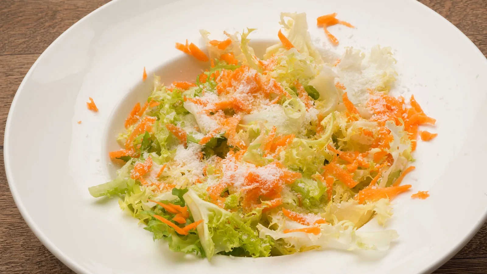 Pela las zanahorias, rállalas y espárcelas sobre la escarola.