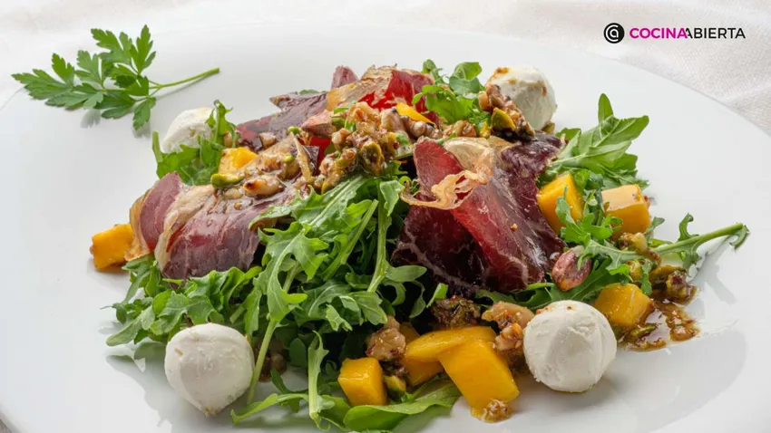 Ensalada de cecina con queso de cabra y mango, de Karlos Arguiñano