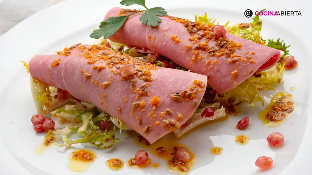 En esta receta, Joseba Arguiñano utiliza mortadela, un embutido originario de Italia. 'He usado una mortadela básica, pero debéis saber que existen versiones más sofisticadas condimentadas con pistachos, trufa, pimiento, aceitunas...', comenta.