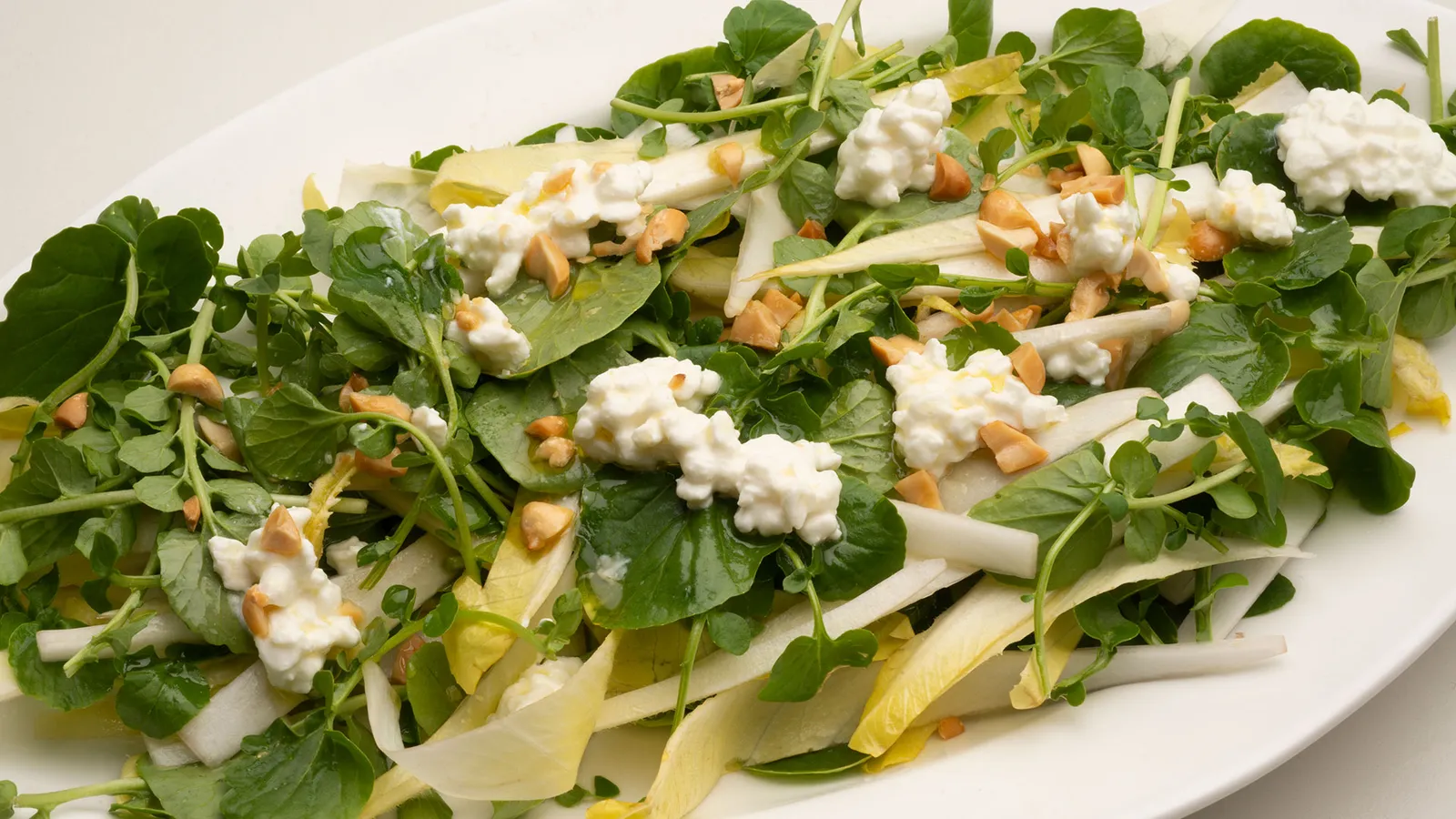 Ensalada de endibias, requesón y cacahuetes