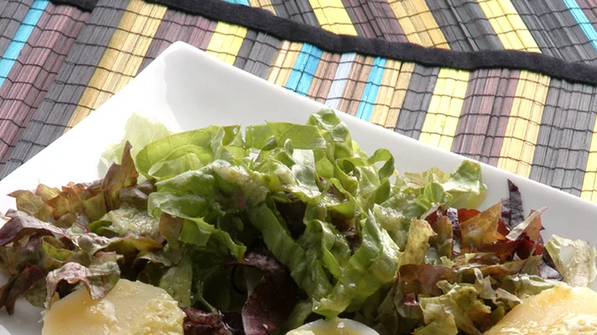 Fresca y ligera receta de ensalada de espárragos, huevo y patata de Karlos Arguiñano. Recomendada para personas que sufren diabetes y/o estreñimiento.