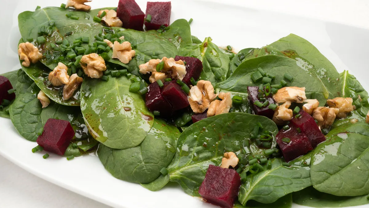 Ensalada de espinacas y remolacha con vinagreta de café