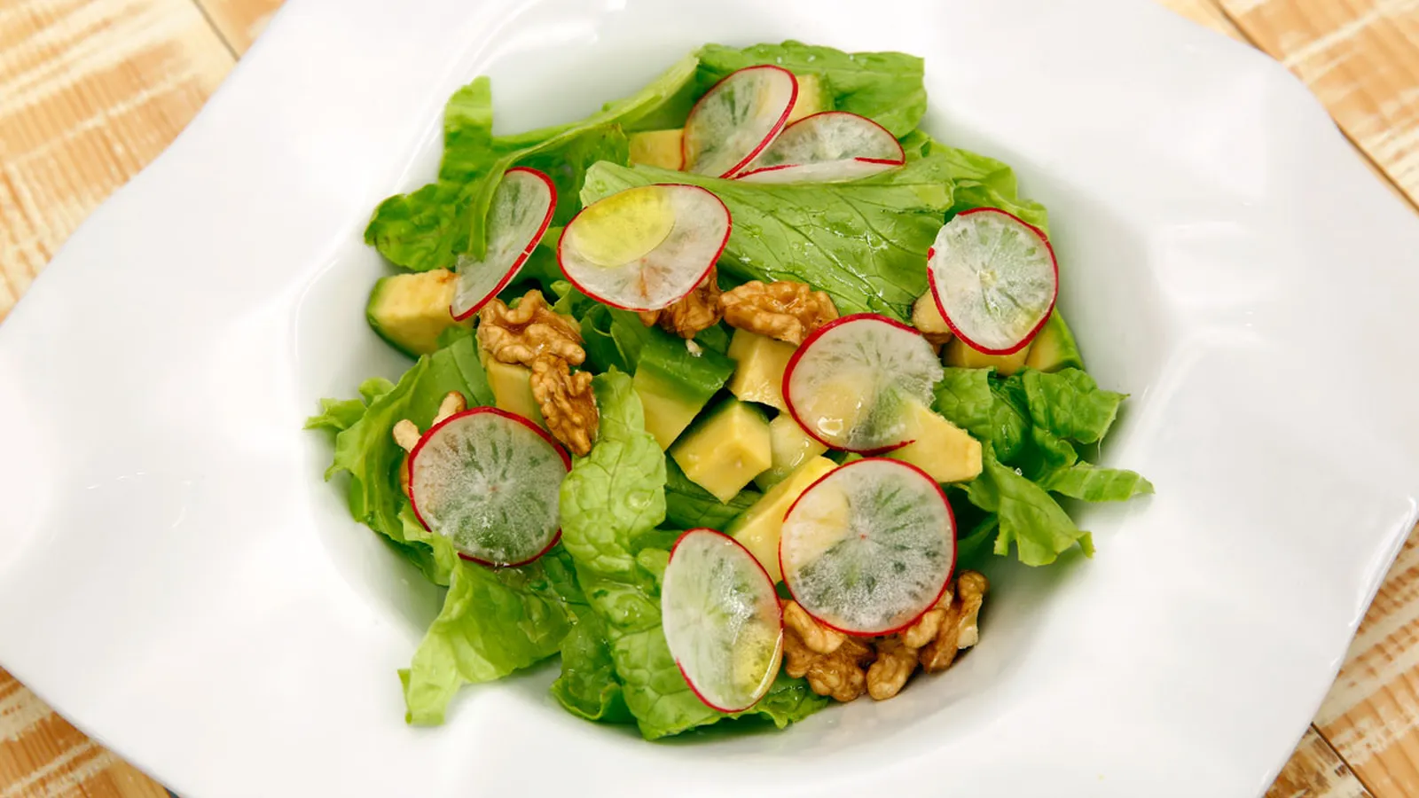 Karlos Arguiñano prepara una ensalada de lechuga con aguacate, rabanitos y nueces, una receta saludable y muy fácil de preparar.