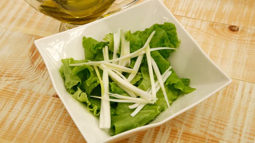 Ensalada de lechuga y cebolleta aliñada con zumo de limón