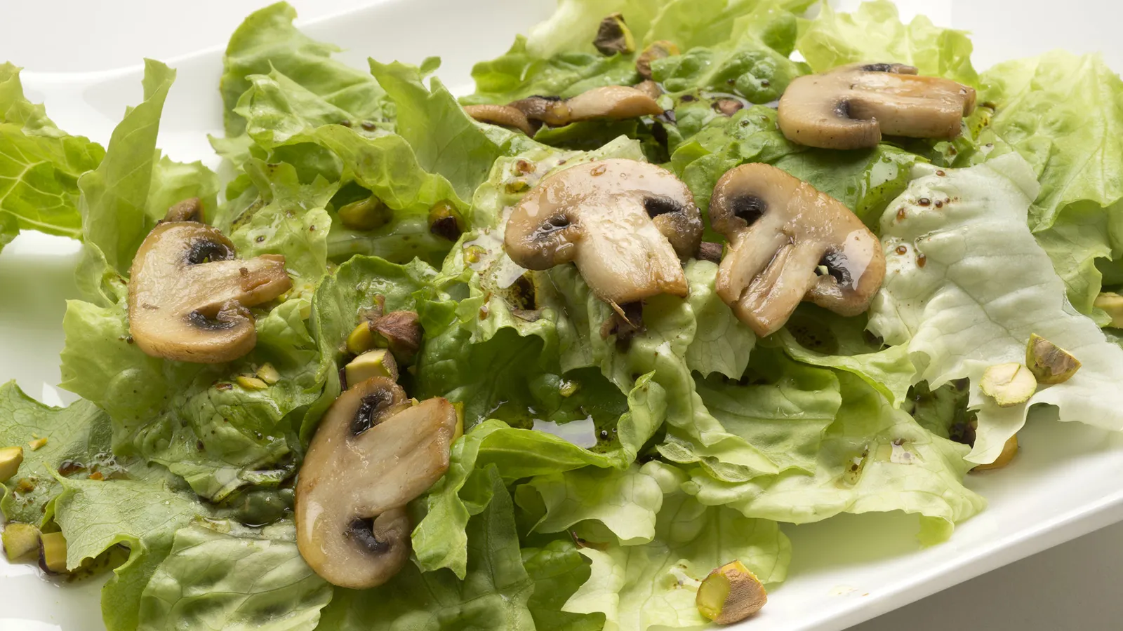 Karlos Arguiñano prepara una receta de ensalada de lechuga con champiñones salteados, pistachos y aliño de aceite y vinagre.