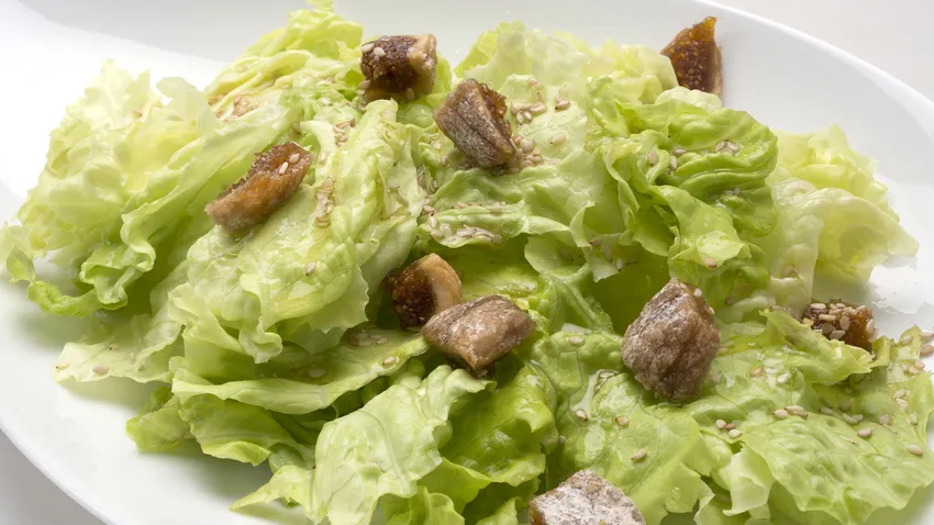 Karlos Arguiñano prepara una ensalada de lechuga con higos secos picados, semillas de sésamo y aliño de limón.