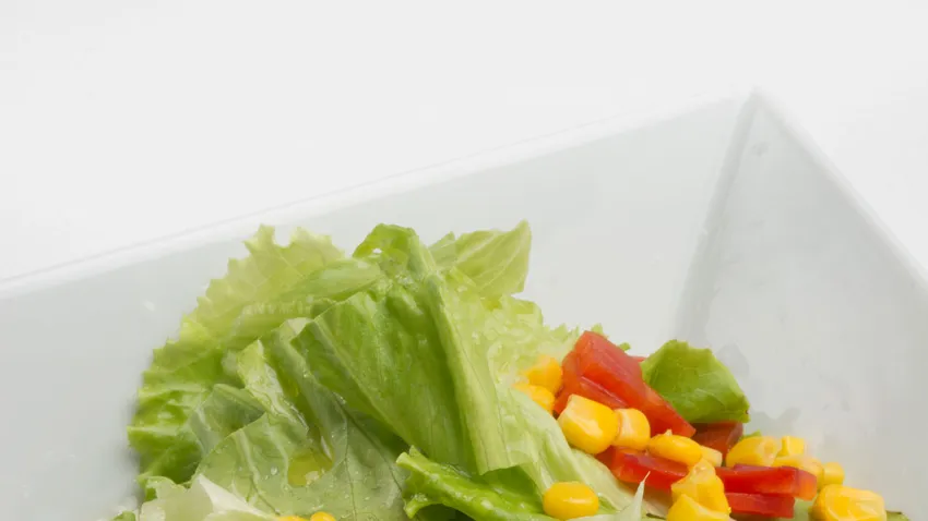 Ensalada de lechuga, pimiento rojo y maíz