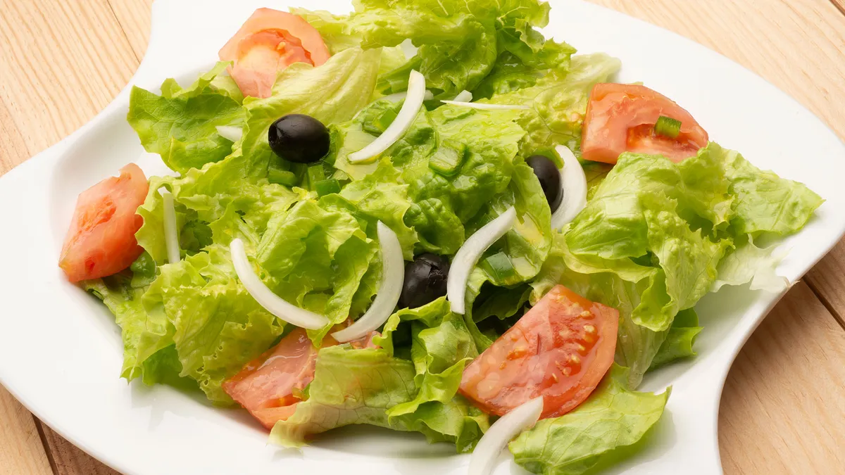 Ensalada de lechuga, tomate y aceitunas negras
