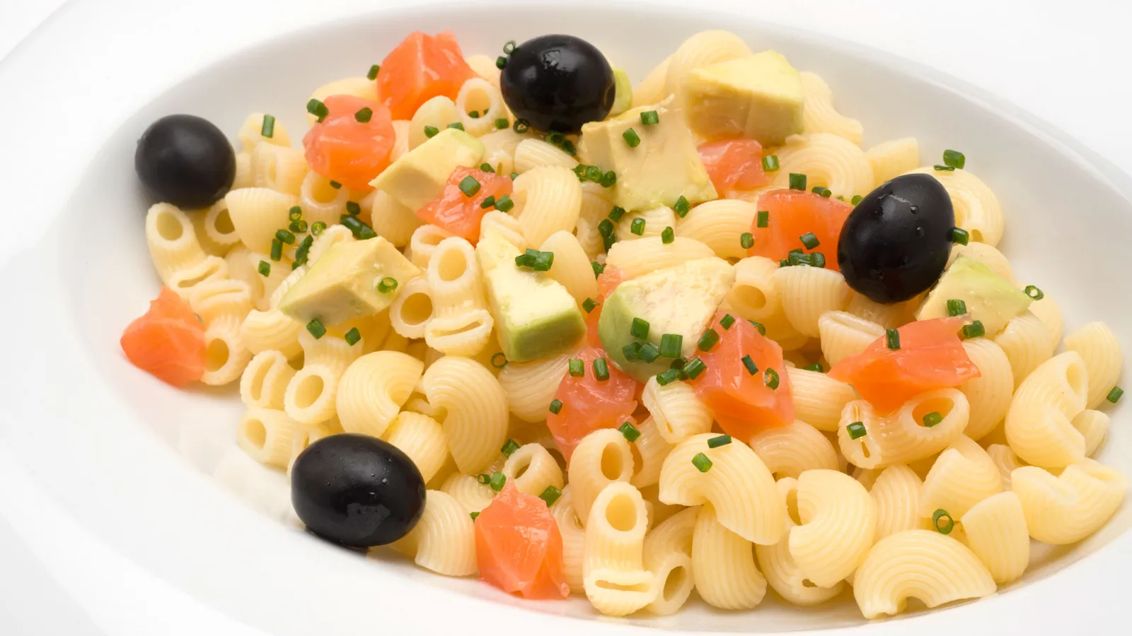 Ensalada de pasta, aguacate y salmón