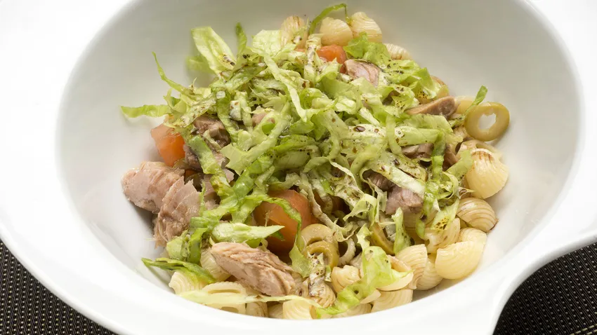 Karlos Arguiñano prepara una receta de ensalada de pasta con lechuga, tomates, atún en escabeche y aceitunas verdes.