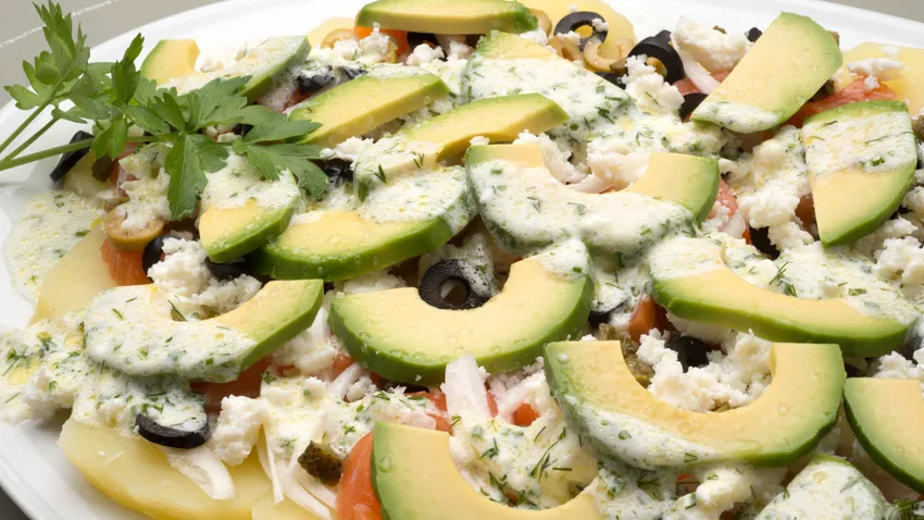 Ensalada de patata, aguacate y salmón ahumado