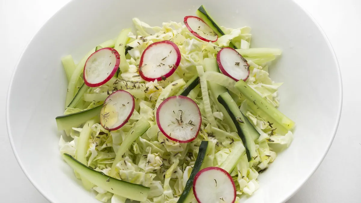 Ensalada de col, pepino y rabanito