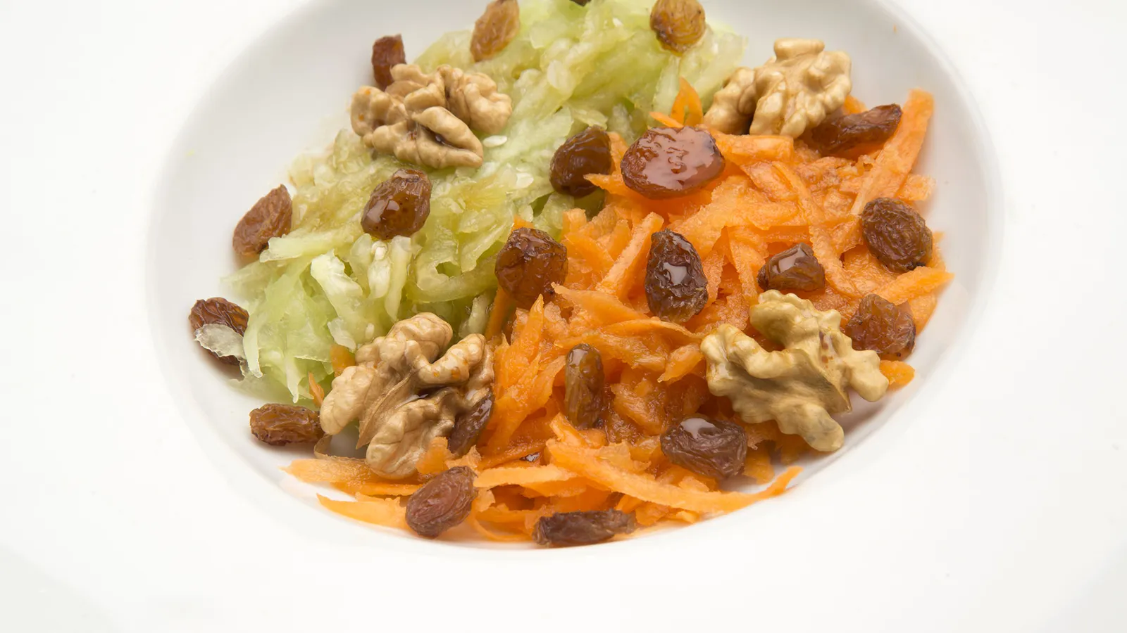 Karlos Arguiñano prepara una ensalada de pepino, zanahoria rallada, pasas y nueces.
