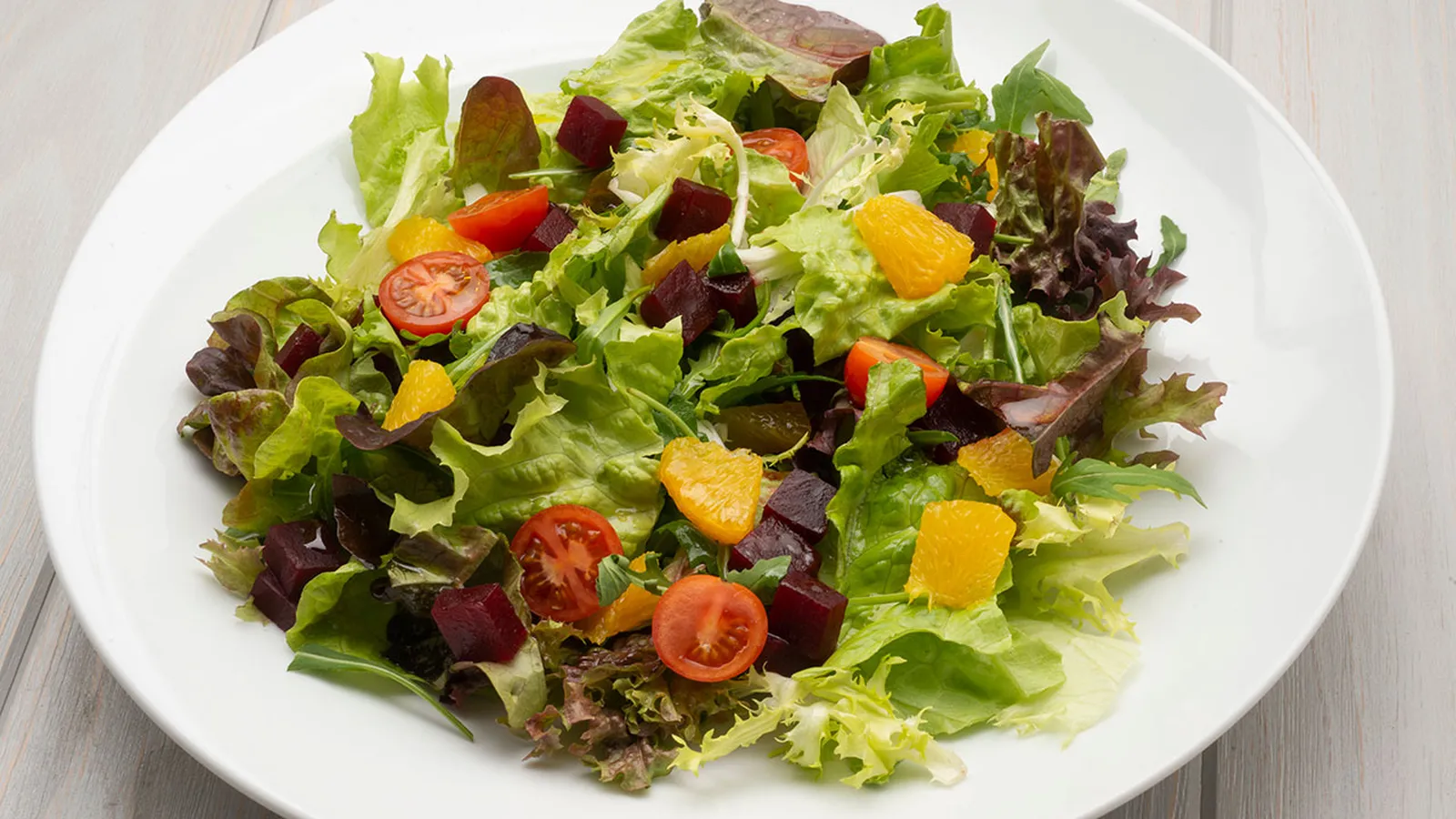 Ensalada de remolacha, naranja y tomates cherry