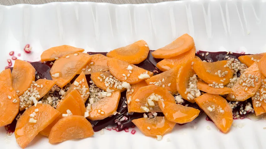 Karlos Arguiñano prepara una ensalada de remolacha cocida con zanahoria, ajo picado y sésamo tostado.