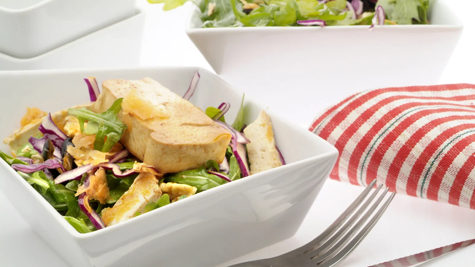 Esta receta de ensalada de tofu y nueces es apta para vegetarianos