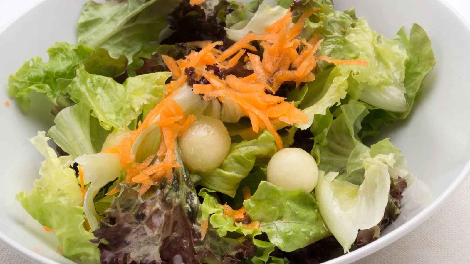 Refrescante ensalada de lechuga, bolitas de melón y zanahoria de Karlos Arguiñano, un plato saludable para servir en la cena o como guarnición.