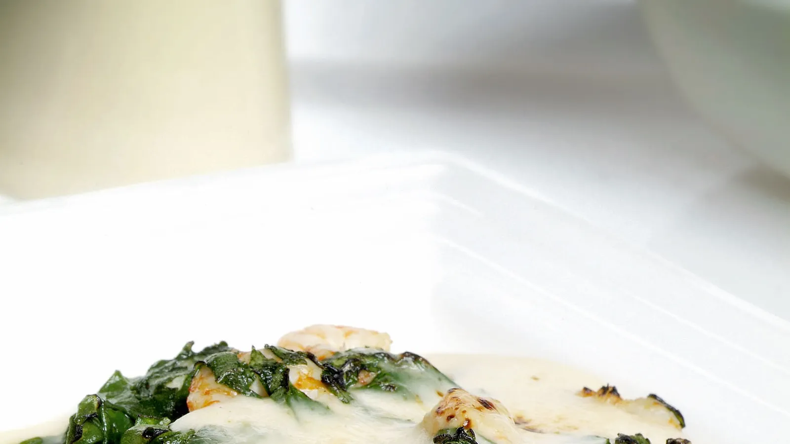 Delicioso y sencillo plato otoñal propuesto por Karlos Arguiñano: espinacas con gambas acompañados de una suave salsa bechamel