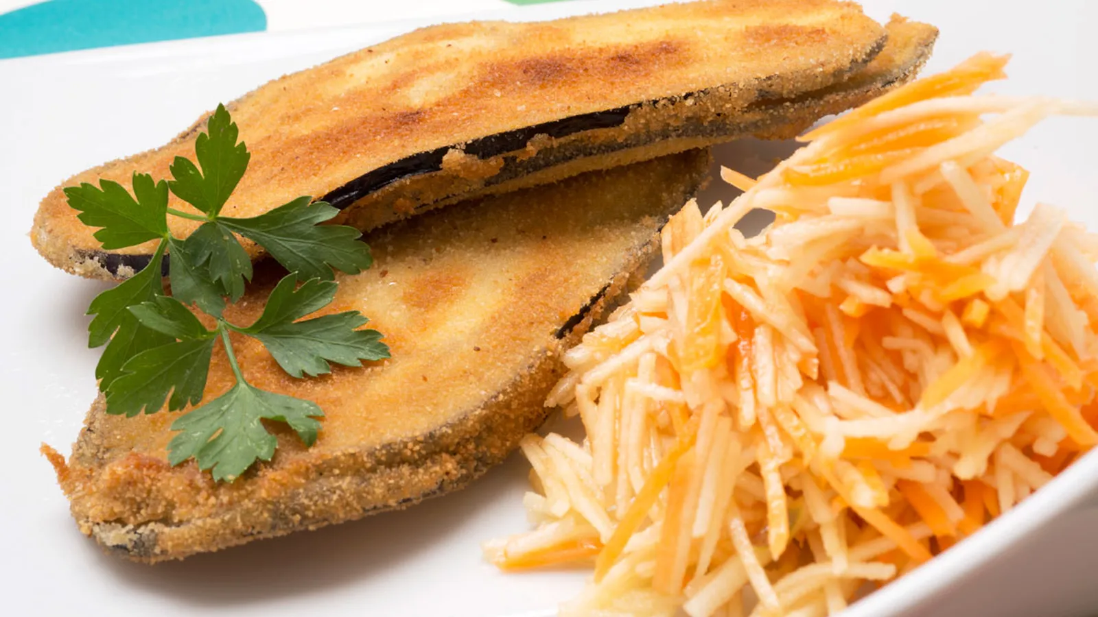 Filetes de berenjena rellenos con ensalada de zanahoria y manzana