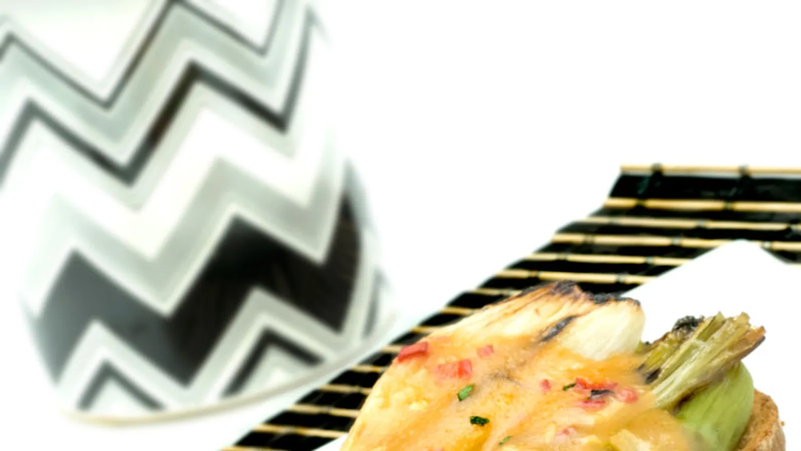 Gratinado de cebolletas y espárragos con velouté