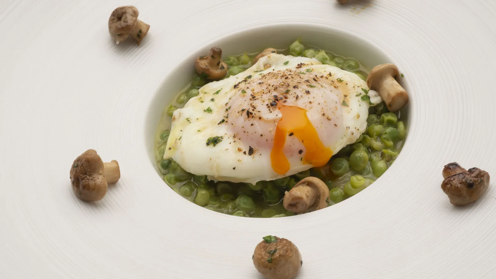 Karlos Arguiñano elabora un plato de guisantes con huevo escalfado y setas de primavera salteadas, una receta vegetariana y saludable.