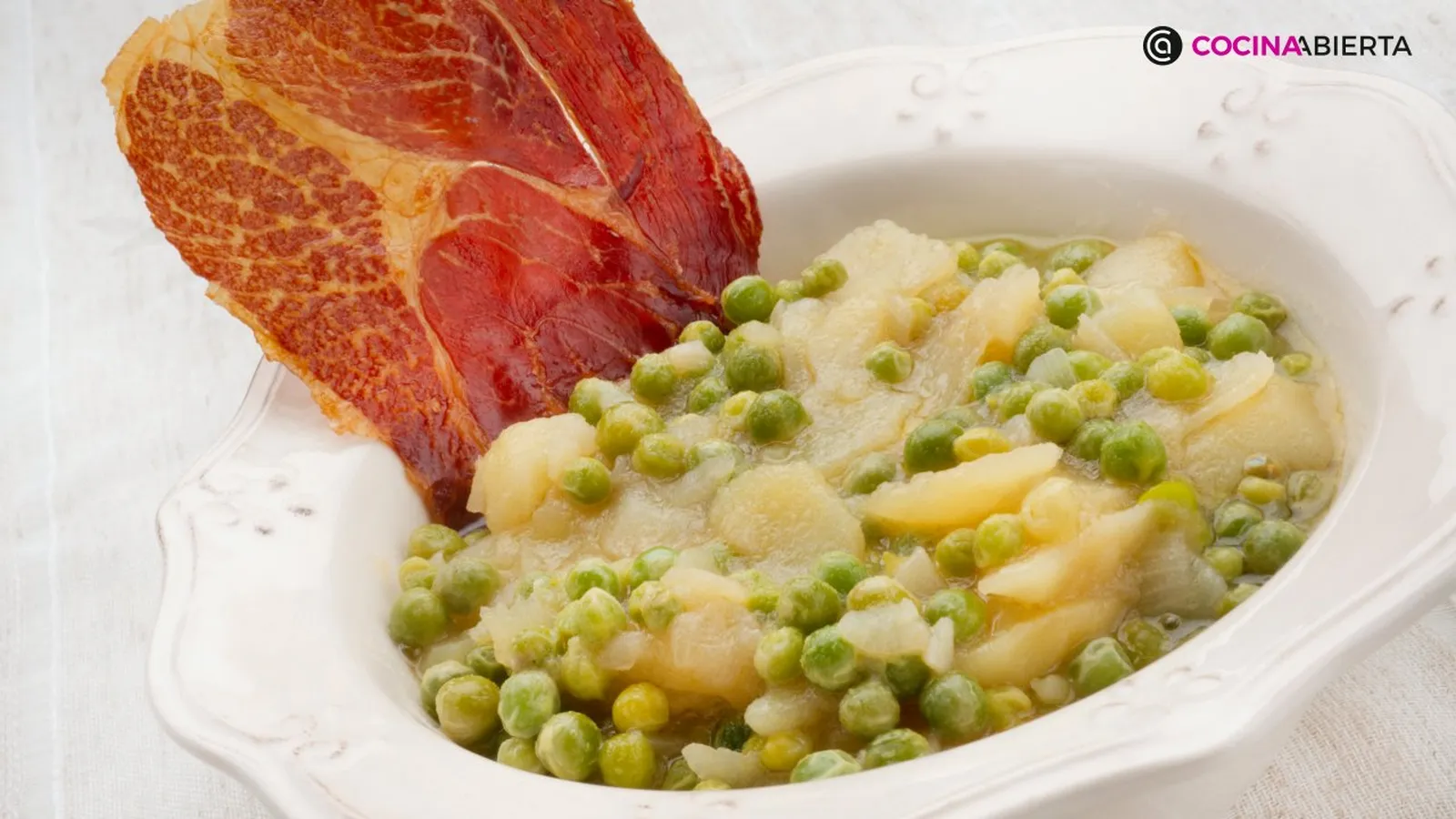 Karlos Arguiñano nos enseña cómo preparar, paso a paso, guisantes con patatas y jamón crujiente. ¡Una receta sencilla y deliciosa!
