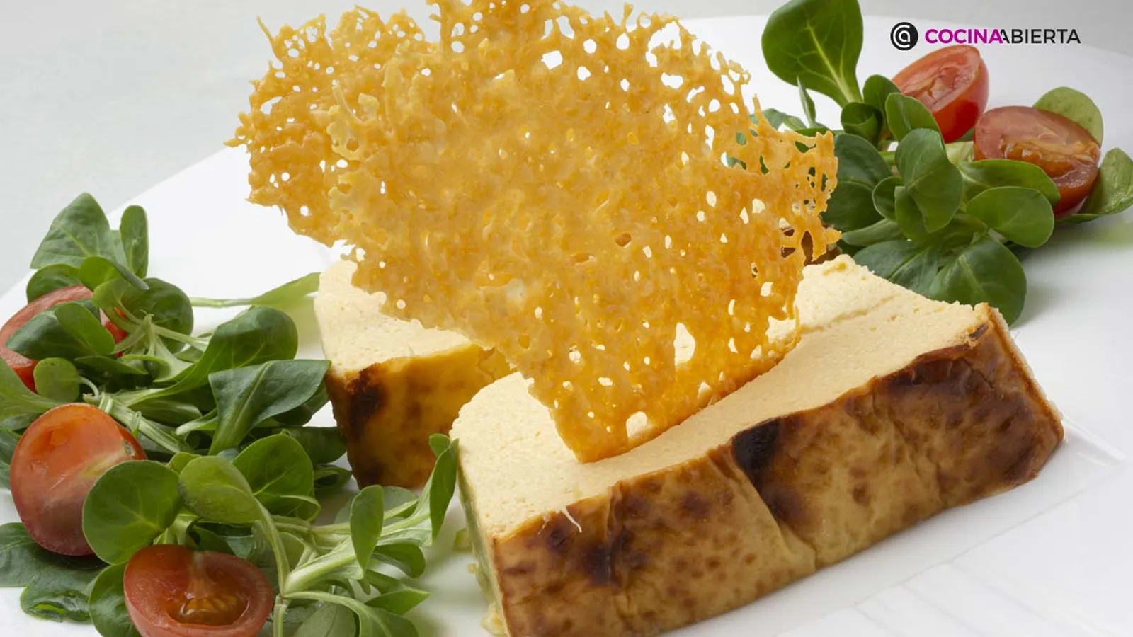 Pastel de espárragos blancos con crujiente de queso por Karlos Arguiñano: un aperitivo espectacular