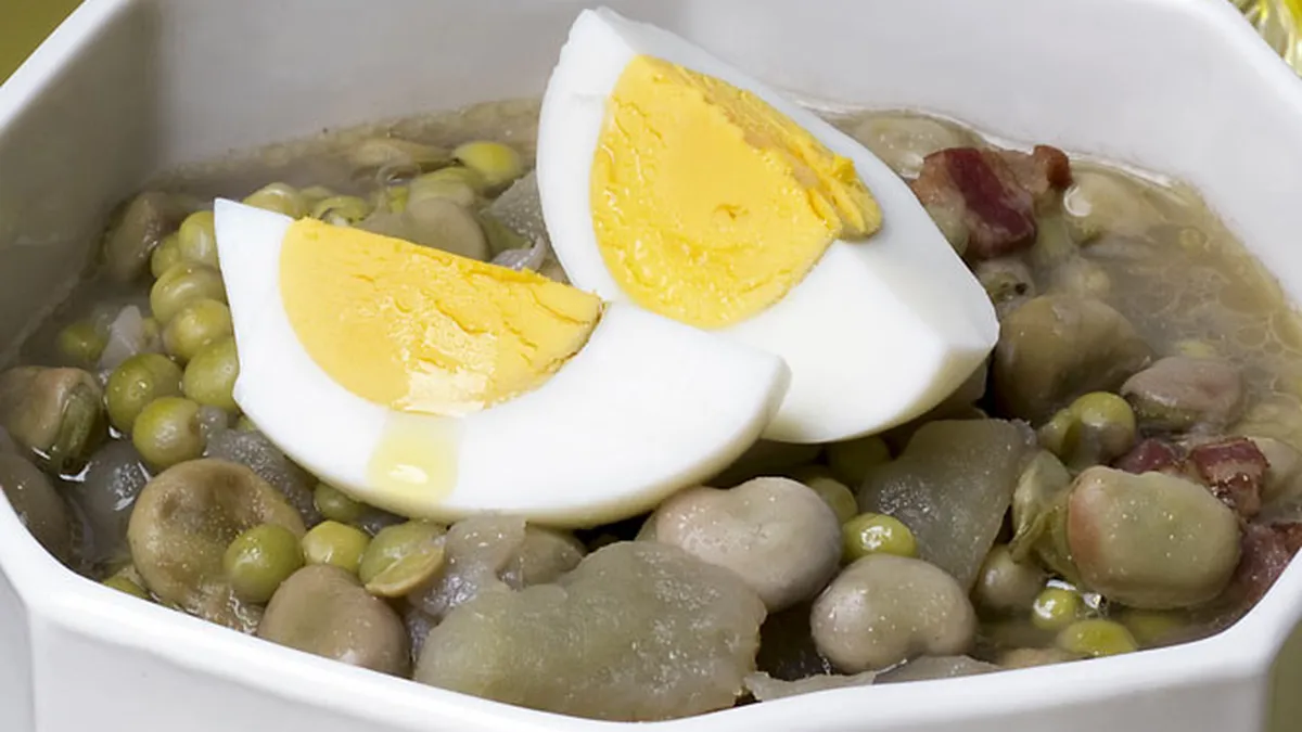 Patatas de guisantes y habas, una receta basada en las habas, una legumbre que tiene la ventaja de que puede crecer en lugares húmedos, hecho que la convirtió en su día en un cultivo muy apropiado.