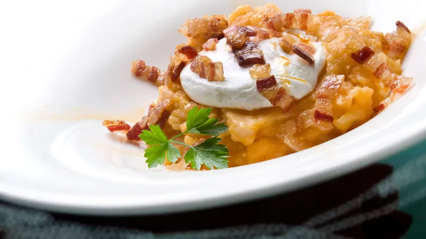 Karlos Arguiñano nos sorprende con una receta de patatas cocidas con pimentón y panceta y con huevos escalfados.