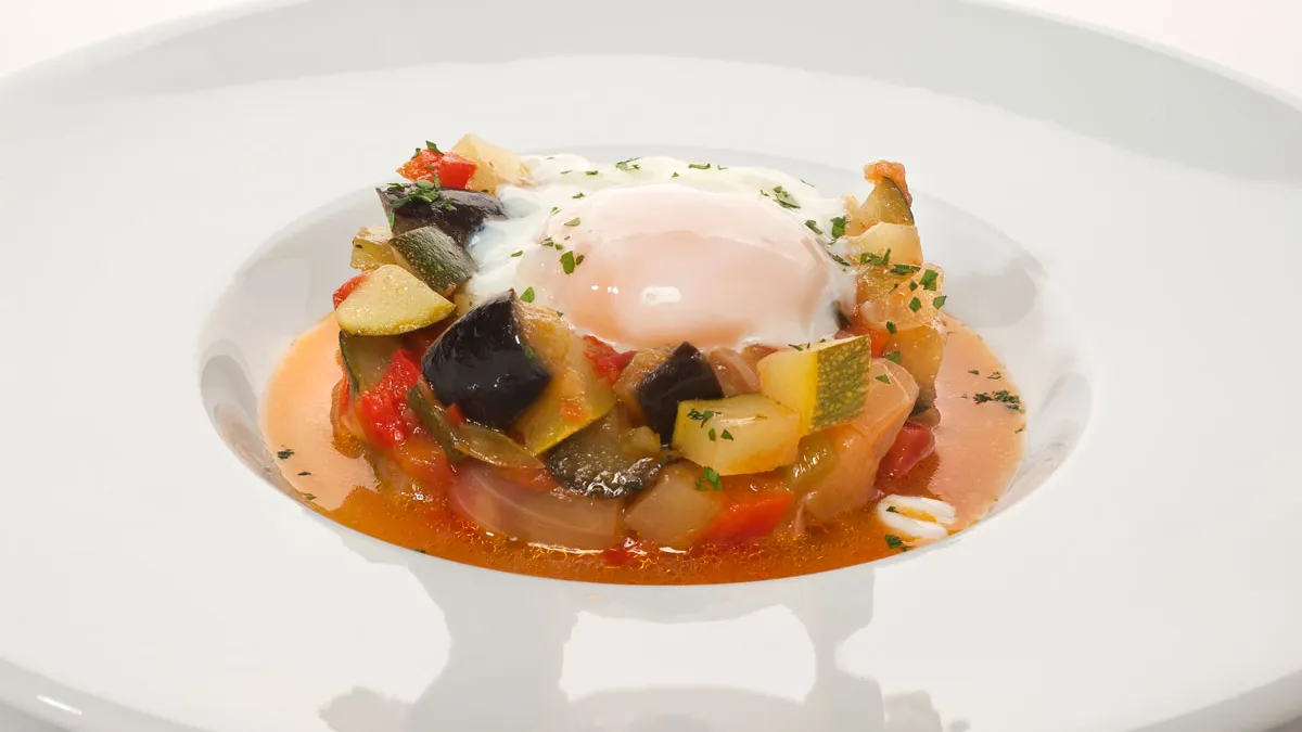 Pisto con huevos al vapor