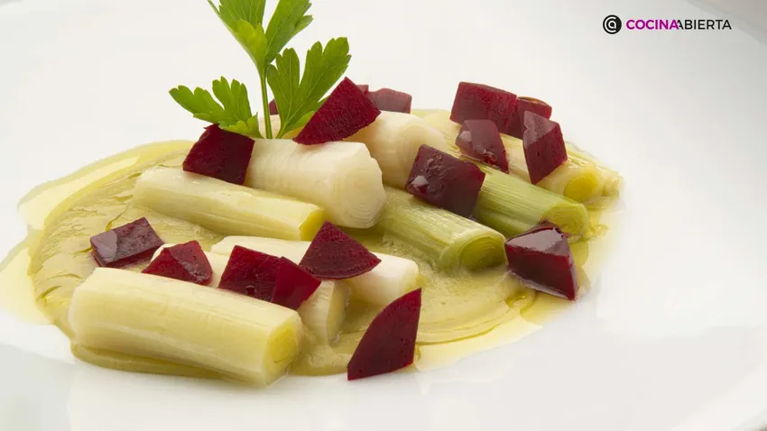 Puerros cocidos con daditos de remolacha por Karlos Arguiñano