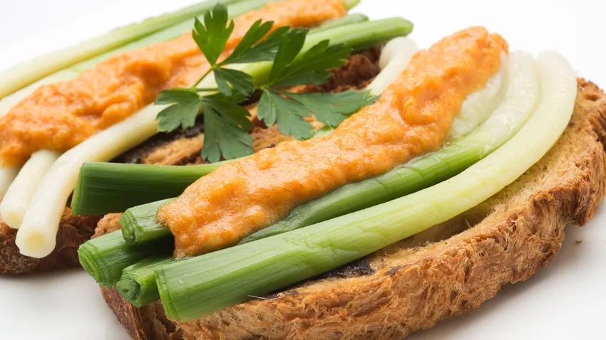 Karlos Arguiñano prepara un rico aperitivo de tosta de pan con tapenade de aceitunas negras, puerros cocidos y vinagreta casera de tomate.