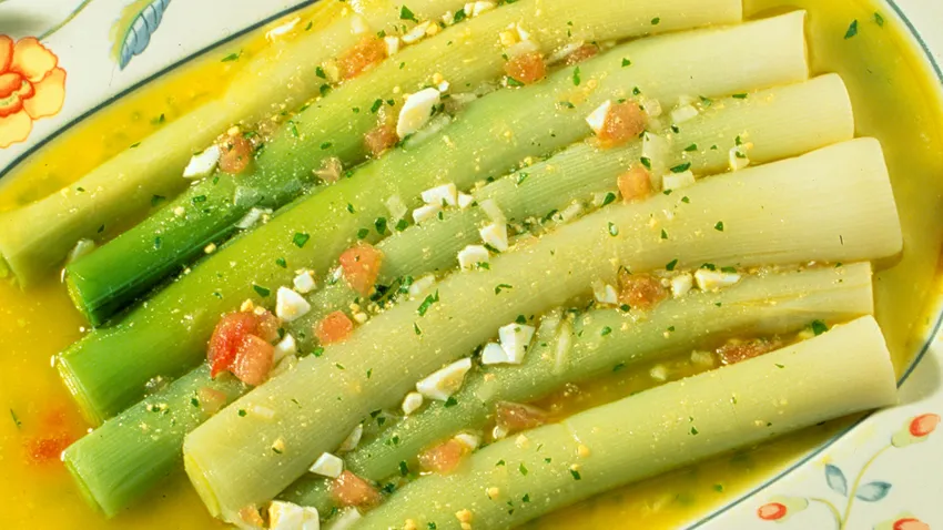 Receta de Karlos Arguiñano de puerros en vinagreta. Una receta fácil y muy fresca.