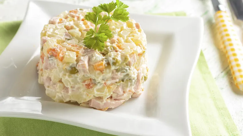 La ensaladilla rusa es también conocida como "Ensalada Olivier", ya que al parecer esta receta fue elaborada por primera vez en 1860 por el chef Lucien Olivier, del Restaurante Hermitage de Moscú.
