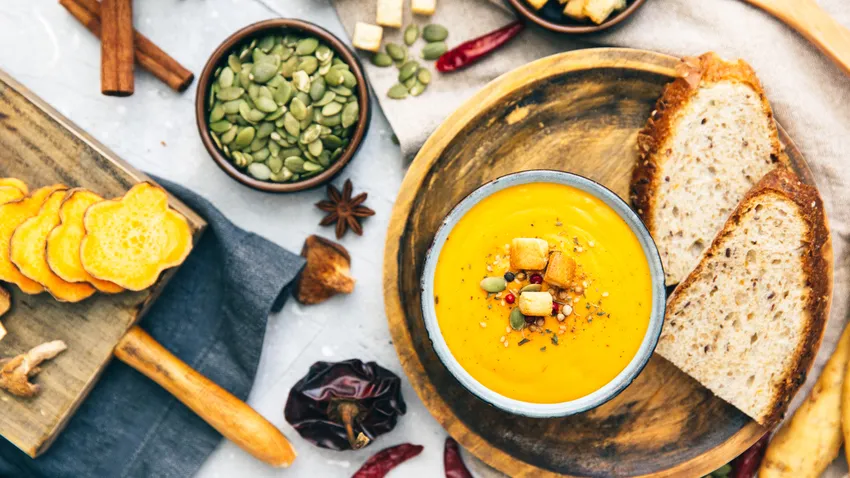 Comenzamos con una sencilla receta de Karlos Arguiñano para preparar crema de calabaza casera, uno de los platos más populares en otoño e invierno ¡un plato saludable y apto para vegetarianos y veganos!