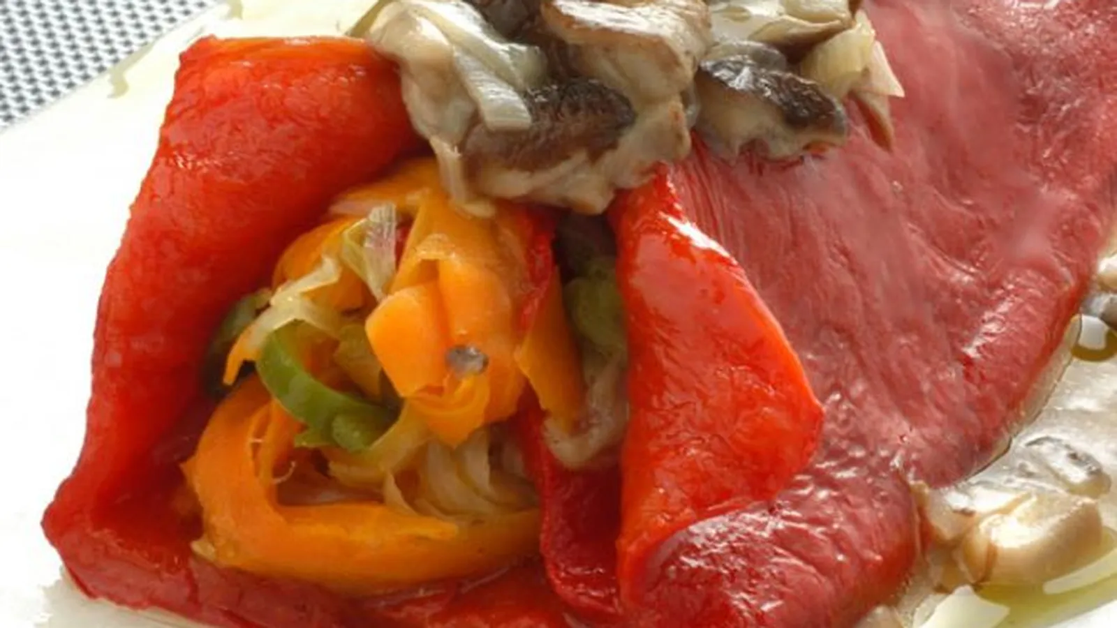 Receta de Karlos Arguiñano de pimientos morrones rellenos de champiñones y verduras, con mahonesa casera gratinada.