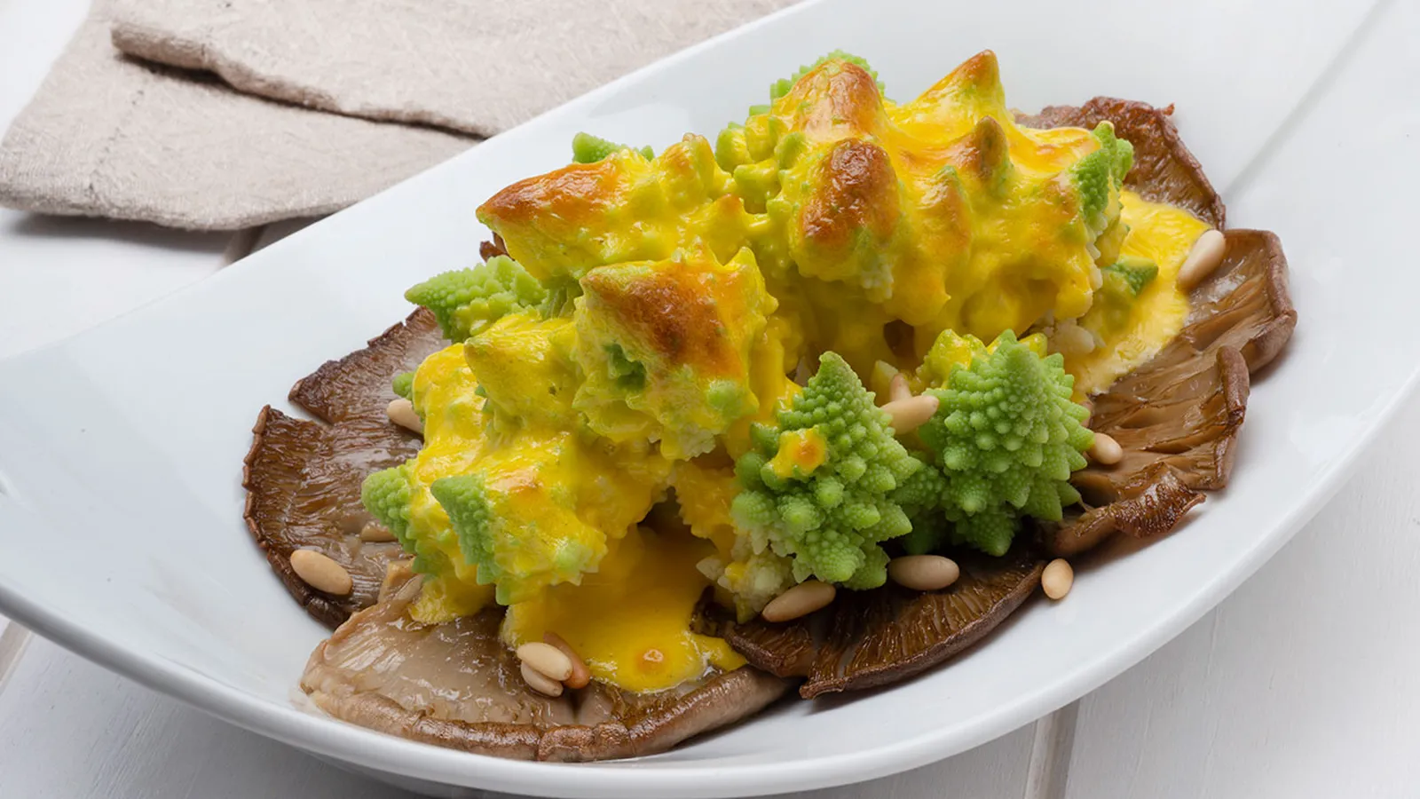 Romanesco y setas con salsa holandesa