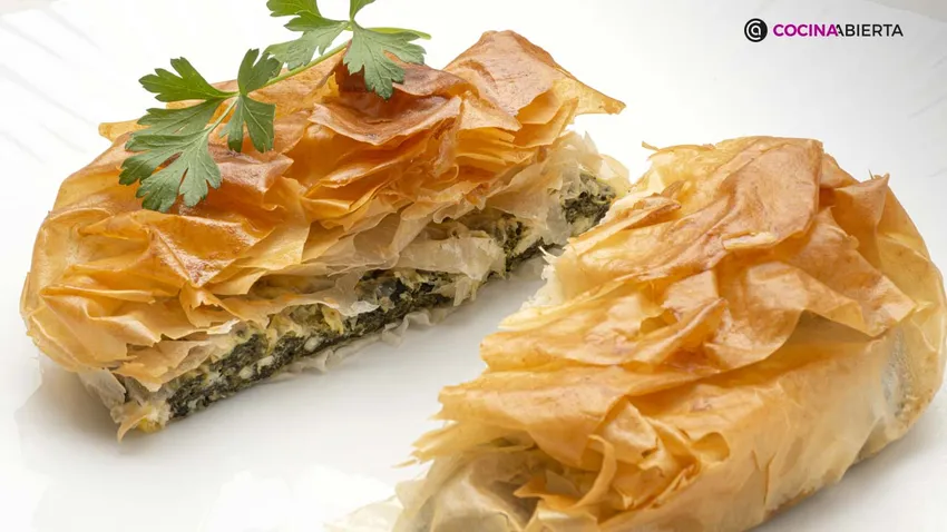 Receta de Spanakopita (pastel griego de espinacas y queso feta) por INESP en la Comunidad de Cocina Abierta.
