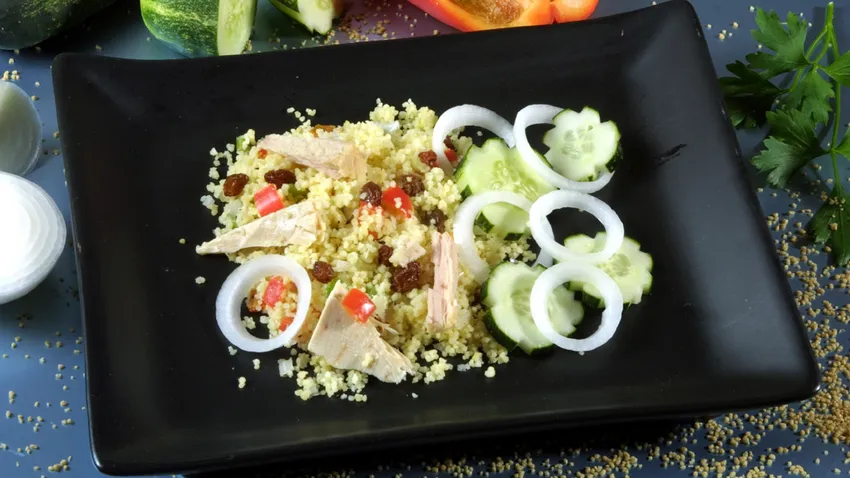 Tabulé con cuscús, pasas y pimientos