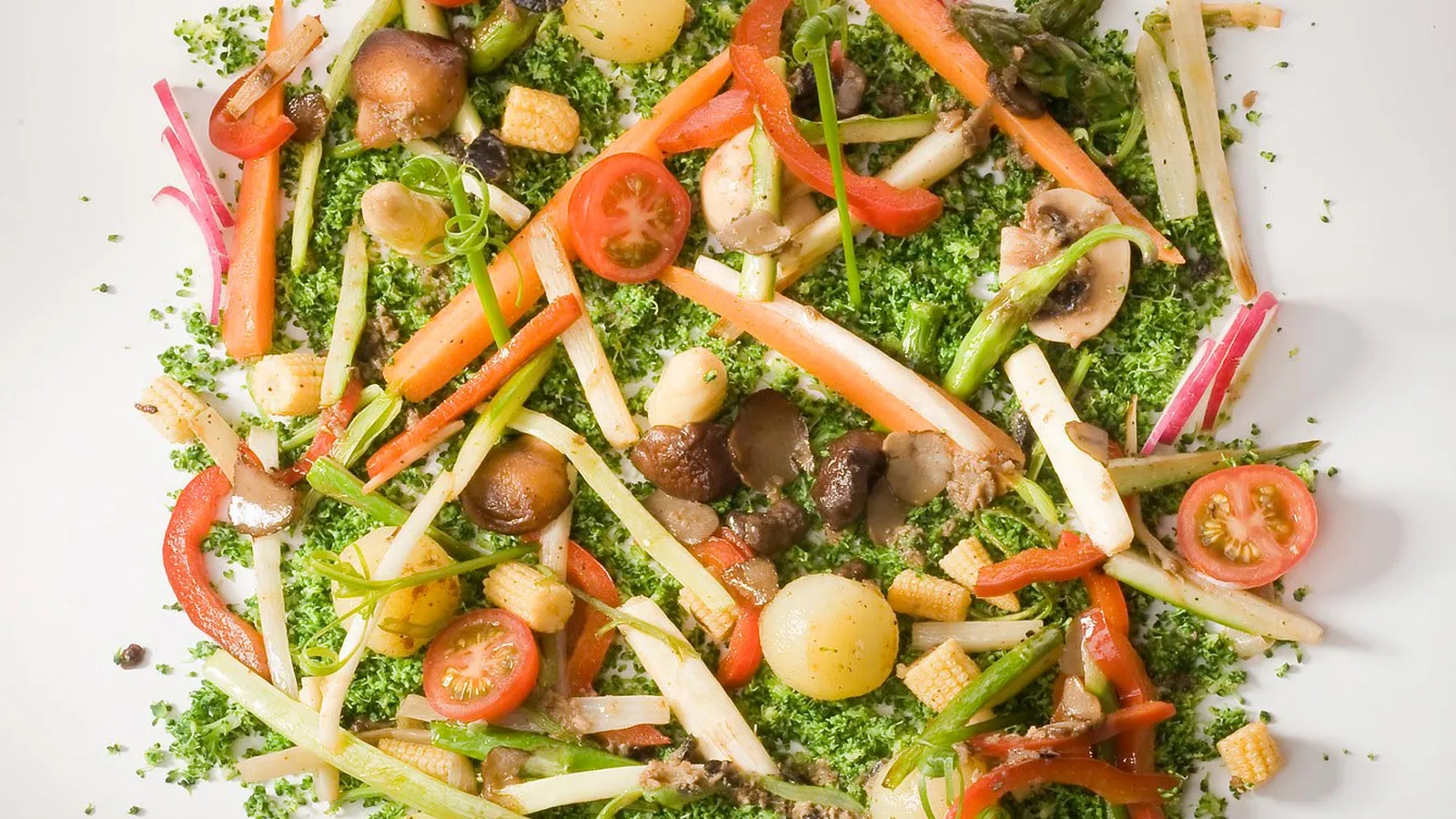 Receta de verduras con vinagreta de trufa, un plato ideal para los fans de verduras y de la comida vegetariana. Receta de Enrique Fleischmann.