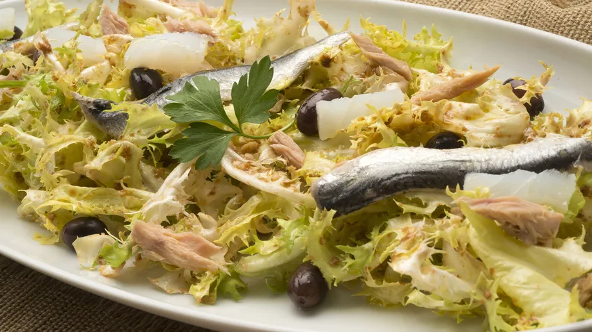También son escasas las proteínas de origen animal presentes en el atún, bacalao y boquerones, ya que suponen el 20% del plato.